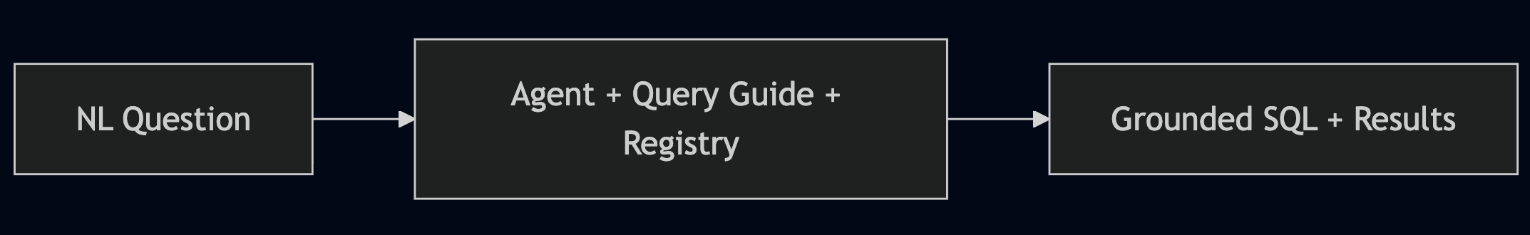 The read path: I ask a question in plain English. The agent reads a query guide, searches the registry for matching implementation IDs, generates grounded SQL, executes it via an MCP bridge, and returns validated results. All without leaving the editor. The implementation may not look the same everywhere, but the pattern should scale.